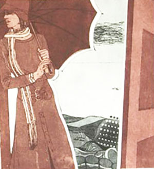Radierung/handkoloriert